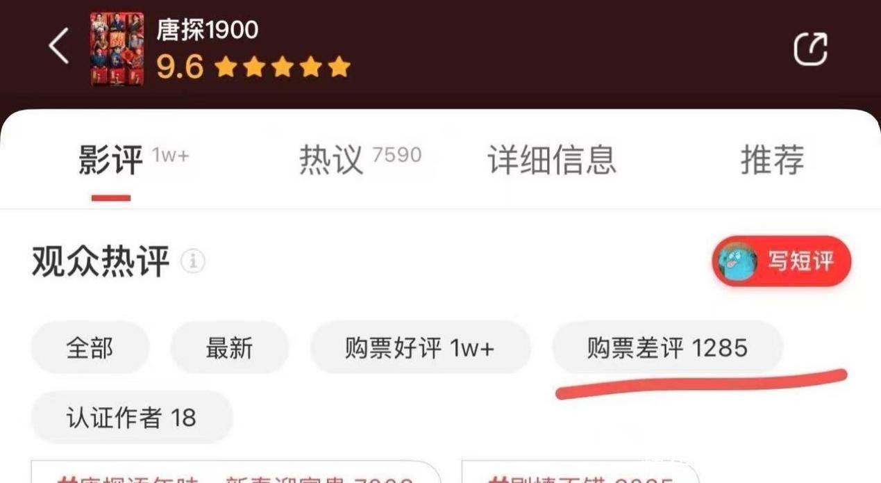 《唐探1900》位居第三。这部系列电影的评价呈现出彰着的南北极分化。