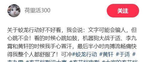 有许多不雅众都在号召,给《蛟龙行为》增多排片,这样的军事题材买卖大制作,拍出来也很窒碍易,是信得过的工业级水准。