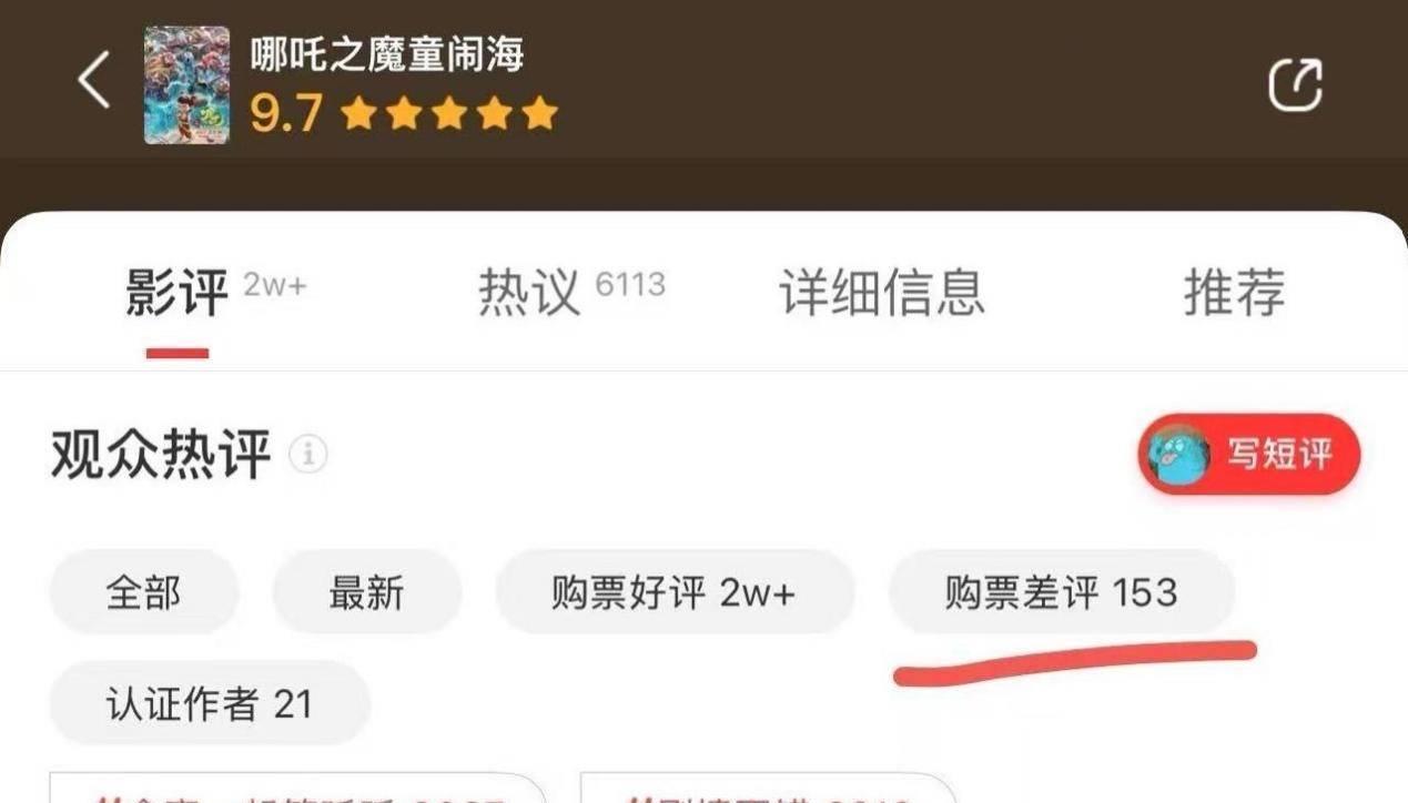 在通盘的购票差评数目里,《哪吒2》是最少的。
