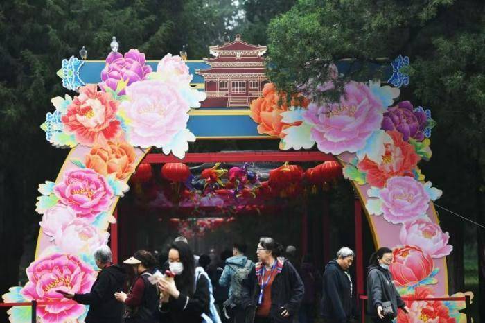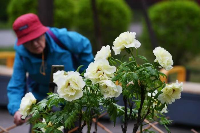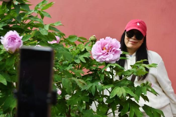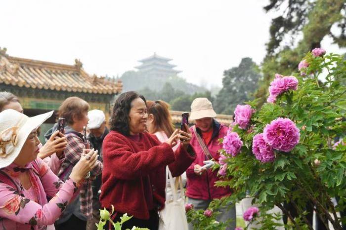 游东说念主在玩赏牡丹。