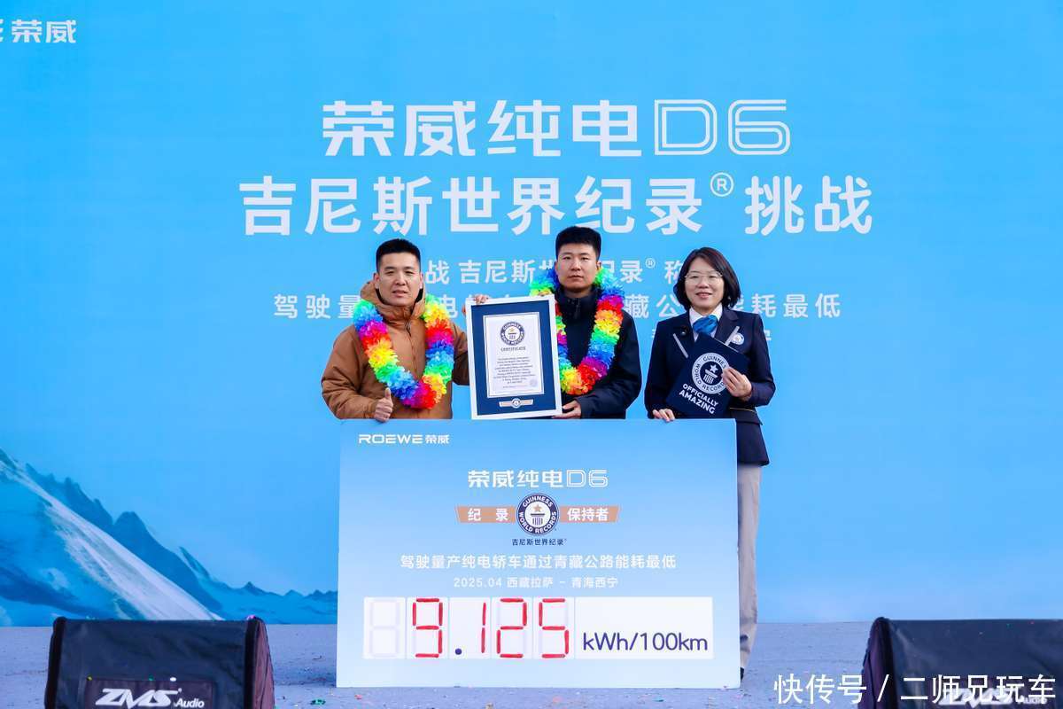 近日,在民众公认的泰斗认证机构吉尼斯的全程公证下,上汽荣威纯电D6以9.125kWh/100km的电耗得回“驾驶量产纯电轿车通过青藏公路能耗最低”的吉尼斯天下记载,代表中国纯电车登临天下之巅。
