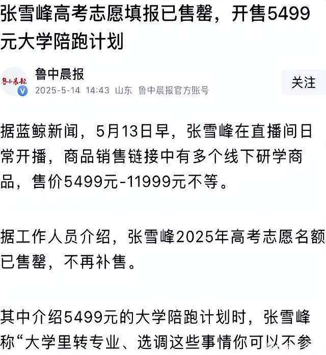 此时,要是有东说念主站出来告诉你哪条路可行,哪条路不能行,哪些坑需要消灭,家长们当然会被宠若惊。张雪峰恰是收拢了这种信息不合称带来的阛阓缺口,他所作念的,是将家长的火暴精确地调遣为处事产物,让信息变现,将教养打包成课程。
