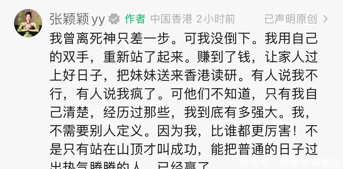 如今张颖颖仿佛还是把已往抛开,就像她我方说的,用我方的双手再行直立起来,赚到了钱,让家东说念主过上了好日子!