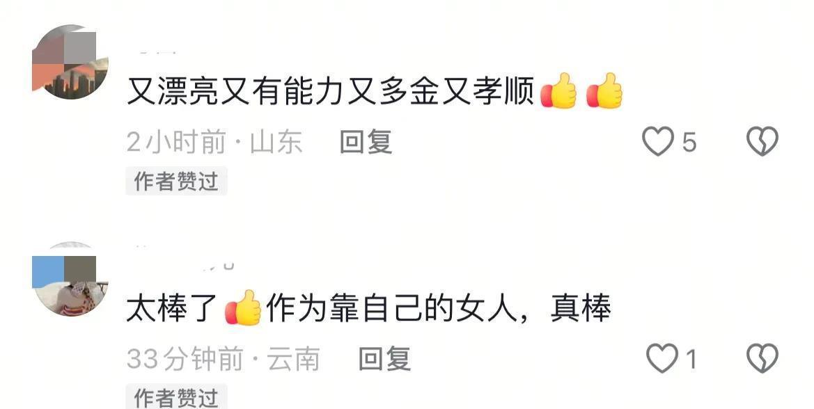 网友赞张颖颖漂亮有才智、多金又孝敬,太棒了!