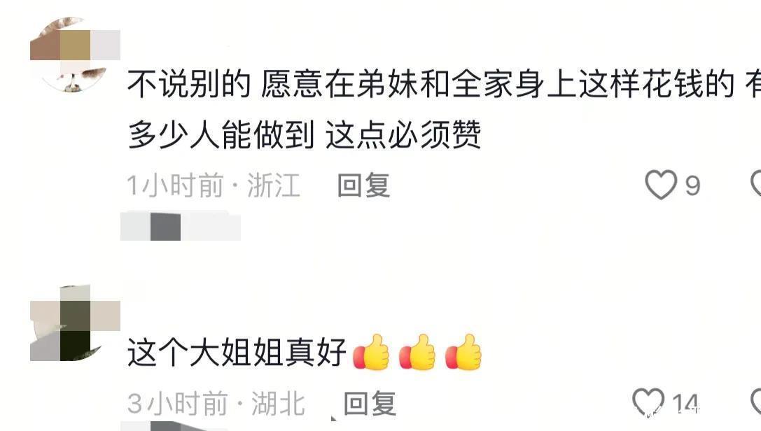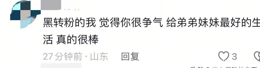张颖颖如今获利了好多能够也成长了,但更多是为家东说念主弟弟妹妹的付出,许多东说念主都有同感,能欢腾给弟弟妹妹这么用钱的东说念主未几,还有东说念主路转粉了,就因为以为张颖颖很争脸,凭借一东说念主之力托举一家东说念主!