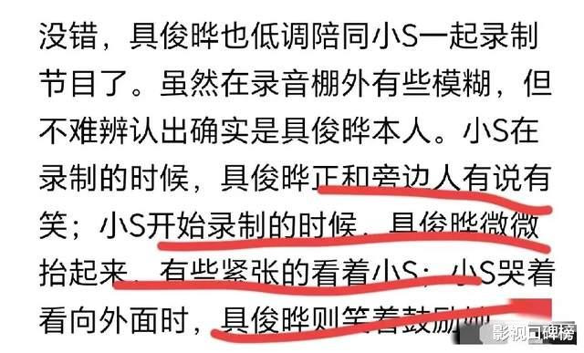 如斯看来,大S吃亏后具俊晔与S家东说念主还有密切的有关。小S二男儿Lily承袭采访时泄露:S家东说念主每周皆会沿途吃饭,具俊晔也来。一家东说念主很关爱他,因为他太瘦了,是以全家皆纷繁给他夹肉。