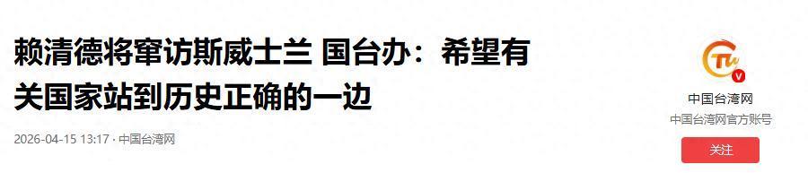 4月15日,国台办发言东说念主陈斌华对赖清德窜访作出严正表态。