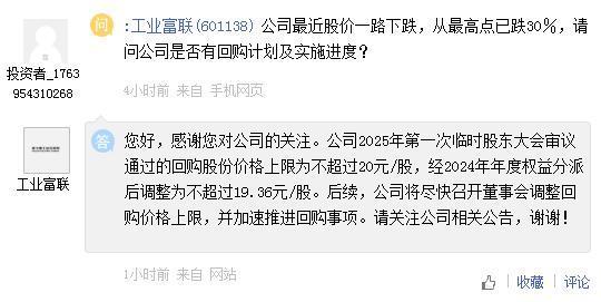 工业富联在互动平台示意,公司2025年第一次临时股东大会审议通过的回购股份价钱上限为不超过20元/股,经2024年年度权柄分配后调度为不超过19.36元/股。公司将尽快召开董事会调度回购价钱上限,并加快推动回购事项。
